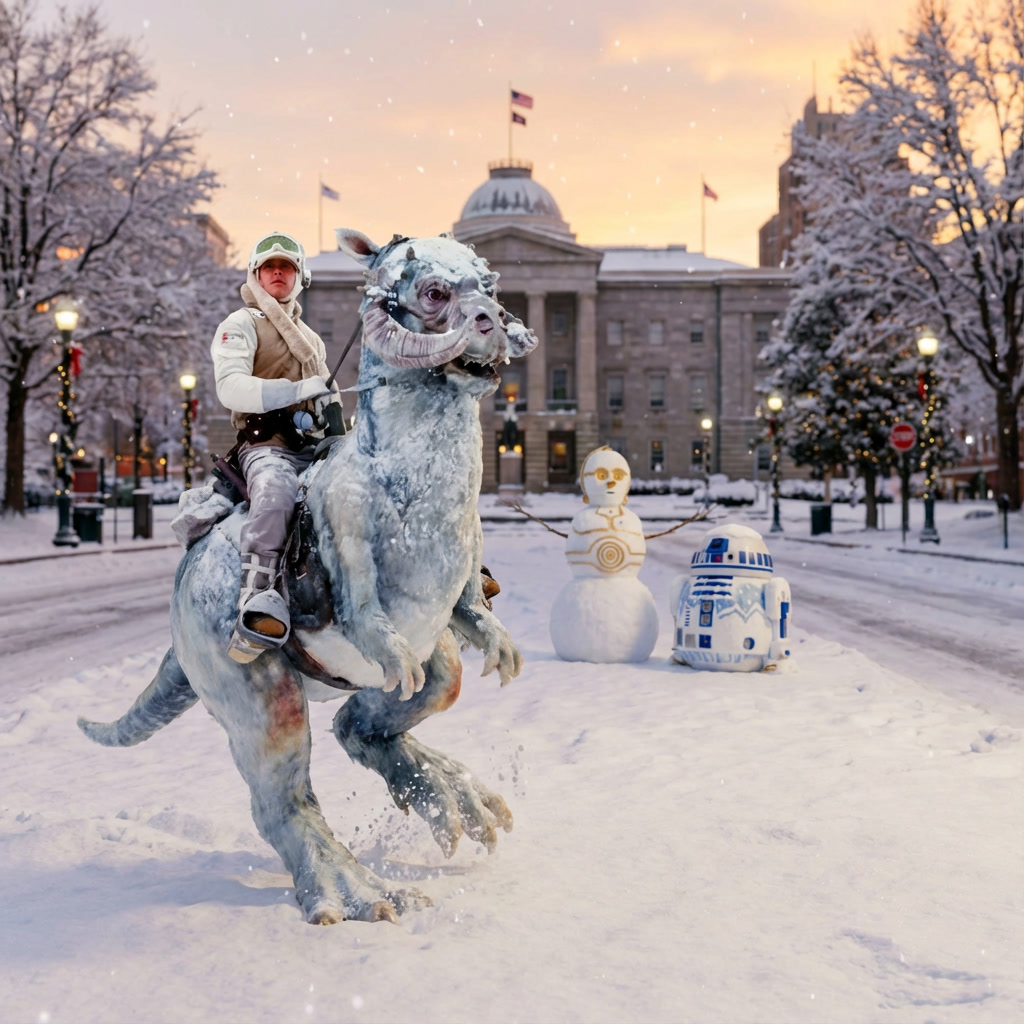 We could be looking at enough snow and ice that cars and trucks simply fail you. Which is why this weekend in Raleigh… the droids are officially joined by a Tauntaun as the preferred mode of transportation!! May the force be with you!